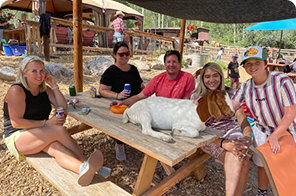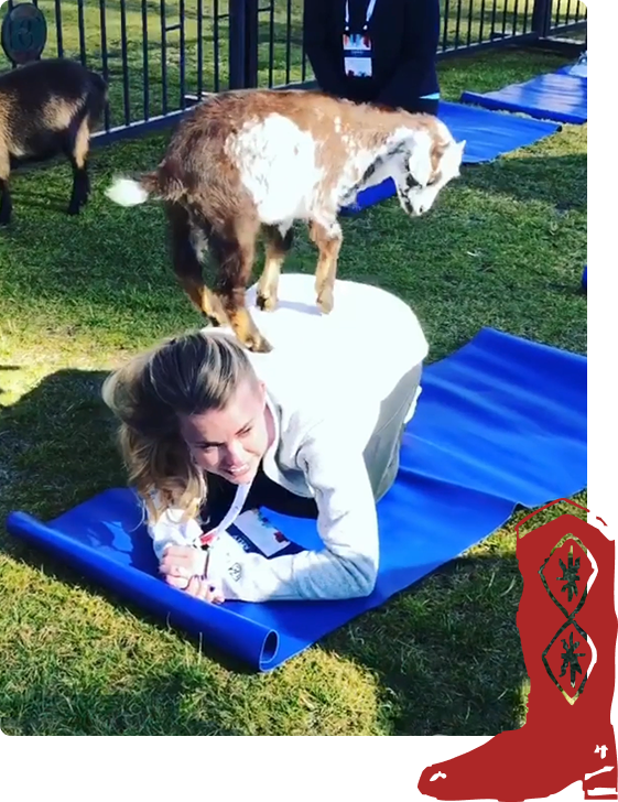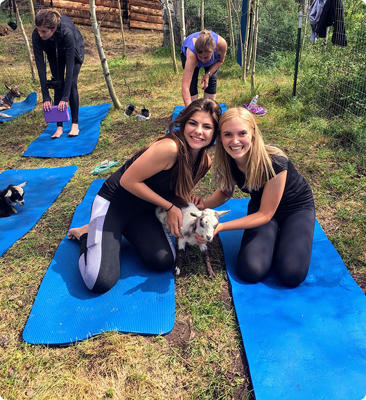 People come here for many reasons, and it doesn’t look anything like a stereotypical yoga class. The instructors are certified, professional, and sweat right along with you, but they also make sure yoga newbies do not feel intimidated. Through the distraction of goats, newbies find they can actually do a pose or two and are willing to pursue the practice—because everyone was watching the goats, not them.